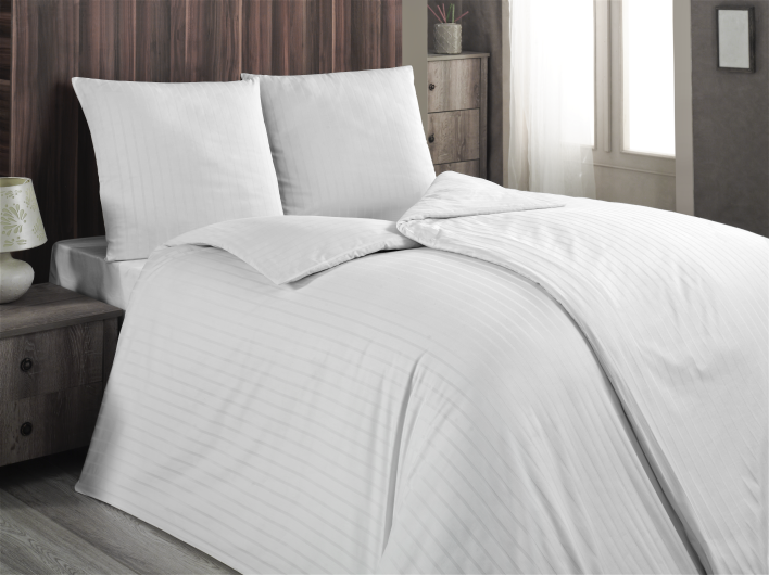 Hotelbettwäsche im ansprechenden 6/24 Streifendesign von aurora Objektwäsche GmbH. Hergestellt aus feinstem Ringgarn-Satin.