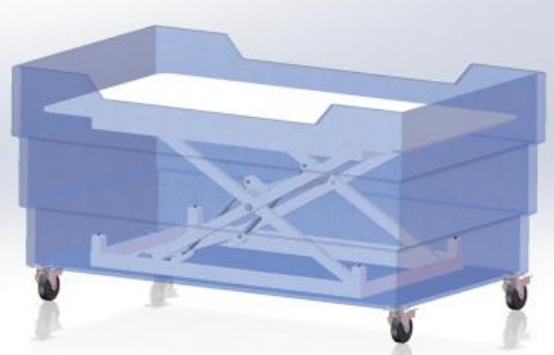 The trolley tipper easily transfers linens from the linen trolley onto the feeder, ironer, or conveyor, enhancing efficiency and simplifying the operation.