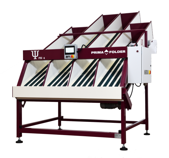 Psi ist eine Maschine, die für das manuelle Zählen und Sortieren von flacher Wäsche konzipiert ist. Ihre Struktur umfasst eine variable Anzahl von Bahnen, die jeweils mit einem Sensor zum Zählen der Artikel ausgestattet sind. Die Maschine verfügt über ein LCD-Display, das die Überwachung der Zählerstände, der Bekleidungsarten und der Kundeninformationen während des Prozesses erleichtert.