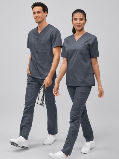 Unser Unisex OP-Kasack "Pisa" ist ein echter Klassiker mit 7days-Nachkaufgarantie*. Der überschnittene V-Ausschnitt ermöglicht ein einfaches An- und Ausziehen. Mit 1 Brusttasche und 2 großen aufgesetzten Taschen bietet der Kasack viel Stauraum. Seitenschlitze sorgen für die nötige Bewegungsfreiheit. Der glatte Stoff mit seiner feinen Köperbindung (Struktur mit leichten Rillen) ist mit ca. 150g/m² (in weiß ca. 195g/m² für mehr Blickdichte) leicht und angenehm auf der Haut und gleichzeitig strapazierfähig genug, um Sie lange durch den Alltag zu begleiten. Alle Farben außer "blue curacao" und "aruba blue" sind Industriewäsche geeignet.