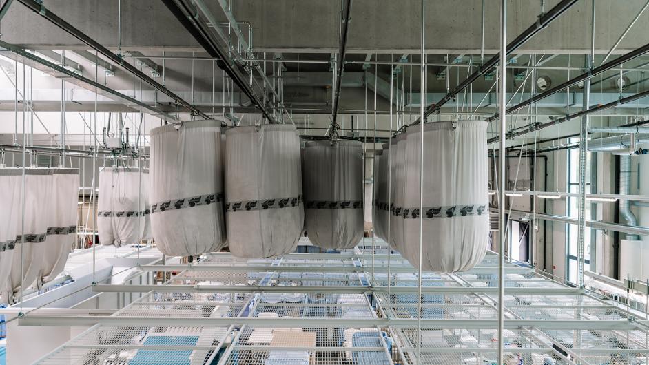 Die effiziente Speicherung von unsortiertem Waschgut erfolgt mit einer Hängebahn oder Sacksystem. Dafür eignet sich die Hängebahn sehr gut.