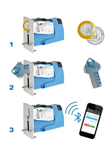 Multiple payment methods in one device. The EMP 500 v7 /CLB coin selector accepts coins and cashless payments. Developed to be more flexible and to make laundrettes more convenient for users and operators. Supported by Android and IOS application for mobile devices with Bluetooth technology and mobile network.